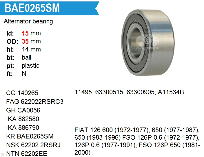 Подшипник генератора (Premium Line)